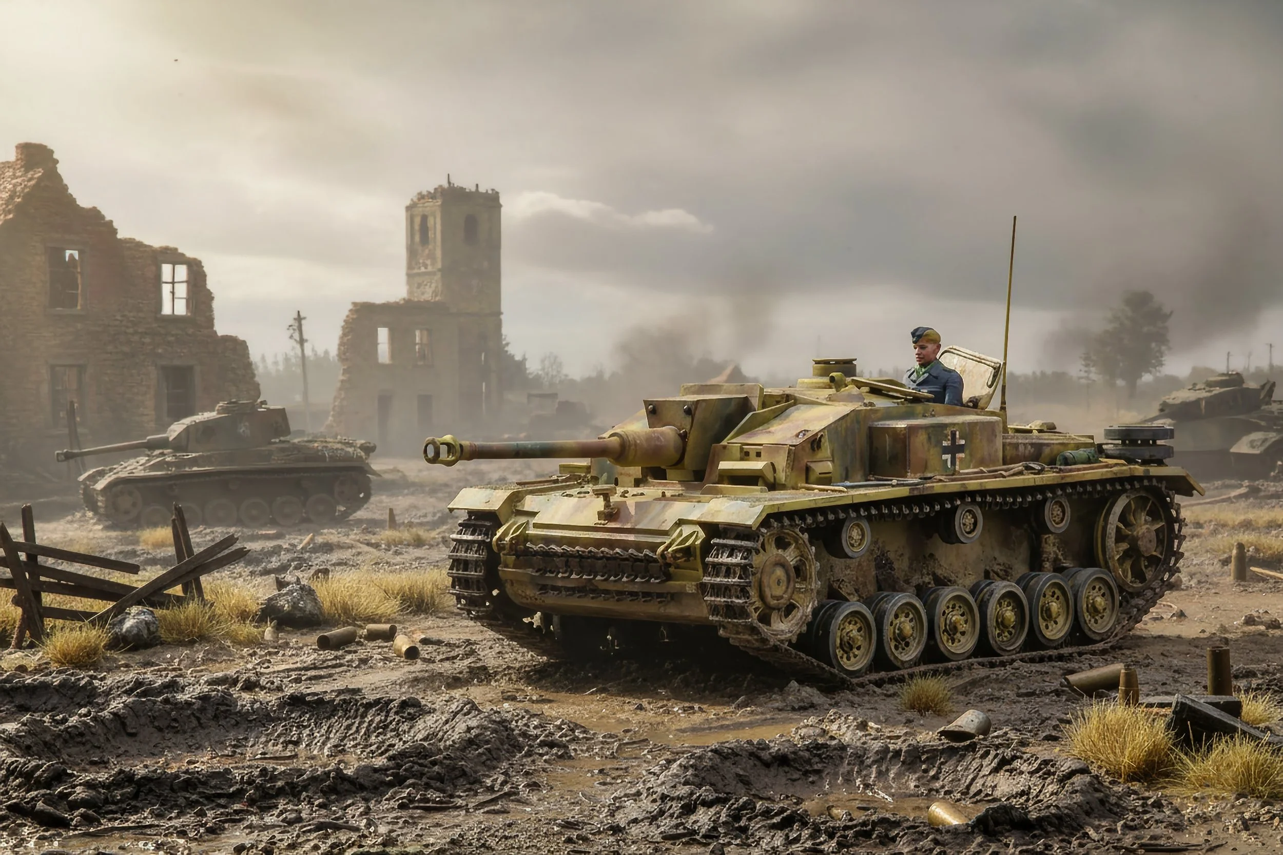 With over 10,000 units built across multiple variants—most notably the Ausf. G—the StuG III served on every major front, from the deserts of North Africa to the frozen steppes of Russia. Praised by its crews for its rugged reliability and devastating ambush capabilities, the StuG III claimed thousands of Allied tanks, cementing its legacy as one of the most efficient and deadly armored vehicles of the Second World War.